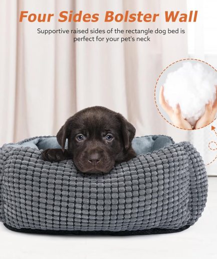 Rectangle Washable Orthopedic Dog Bed for Small, Medium and Large Dogs, Soft Calming, Sleeping Puppy Bed Durable Pet Cuddler with Anti-Slip Bottom, S (20″x19″x6″)