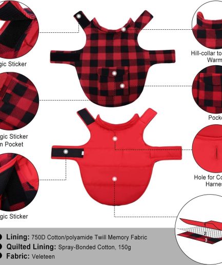 Dog Winter Coat, Fleece Doggie Jacket Plaid Reversible Vest Waterproof Windproof Cold Weather Clothes for Small Medium Large Dogs(Red, M)