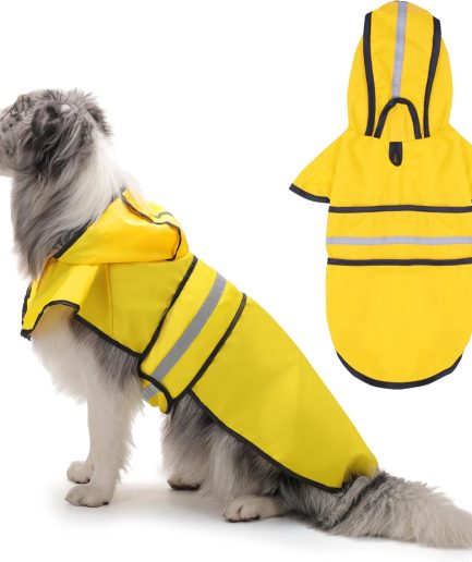 Dog Raincoat: Hooded Slicker Poncho, Durable Waterproof Jacket with Reflective Stripes for Safety, Convenient Leash Hole, and Adjustable Fit, Perfect for Small, Medium, and Large Dogs Yellow L